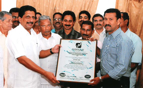 Mr.Arun receiving ISO Certificate from Hon. Minister Mr. Mons Joseph.